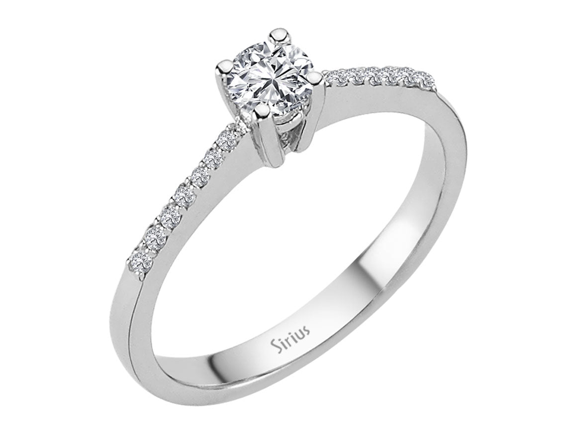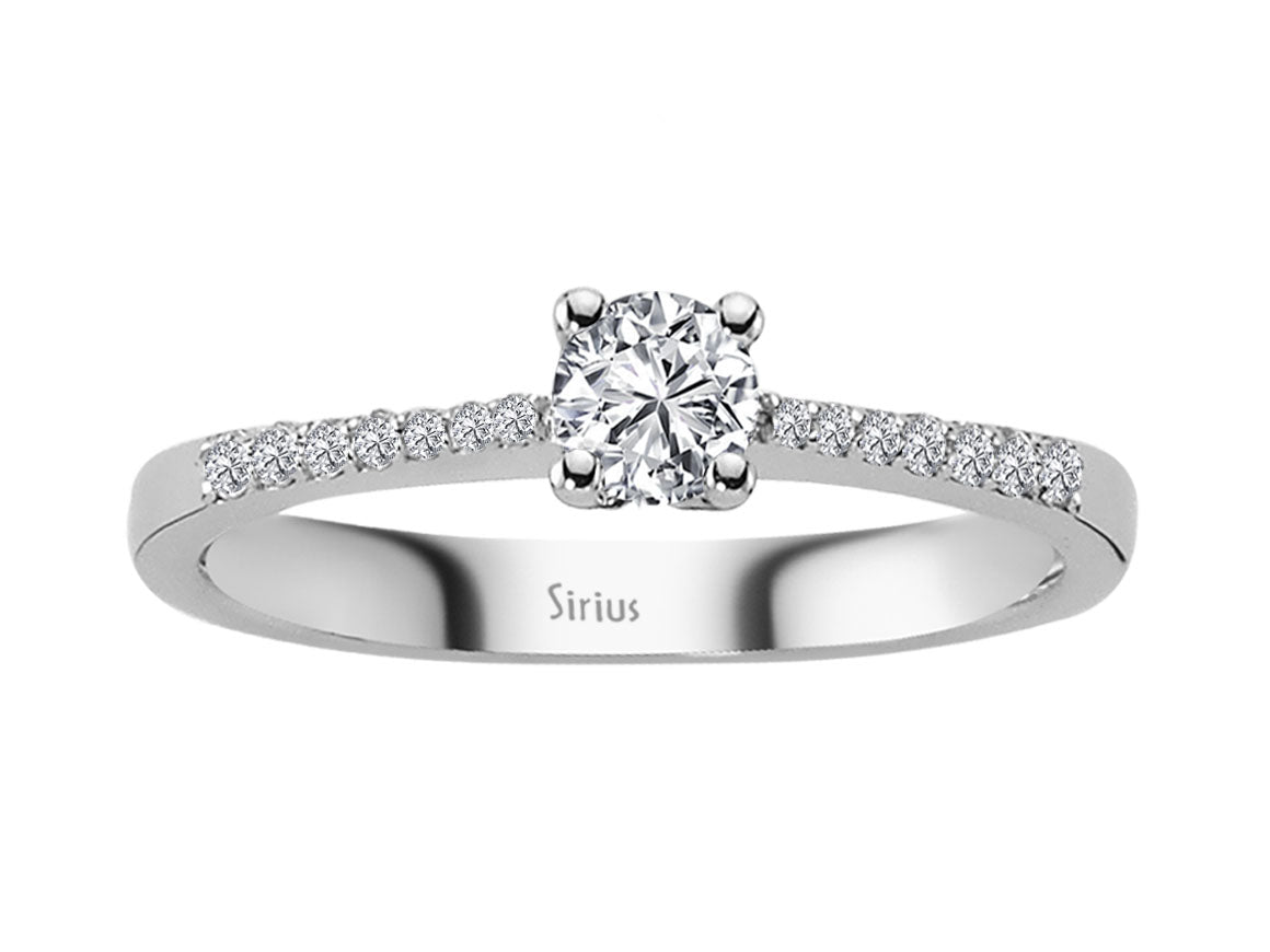 Dieser elegante Verlobungsring ist mit einem zentralen, laborgezüchteten Diamanten von 0,24 Karat besetzt, ergänzt durch 14 funkelnde Pavé-Diamanten mit insgesamt 0,10 Karat. Gefertigt aus edlem 14K Weißgold vereint dieses Design zeitlose Schönheit mit nachhaltigem Luxus – ideal für einen stilvollen Heiratsantrag.