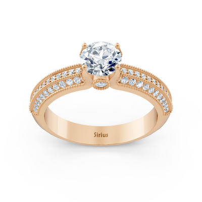 Bague en or rose avec sertissage pavé et diamant de laboratoire brillant